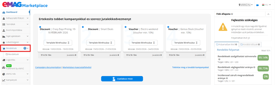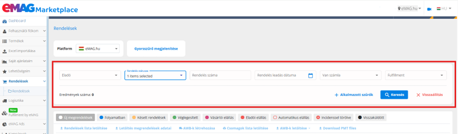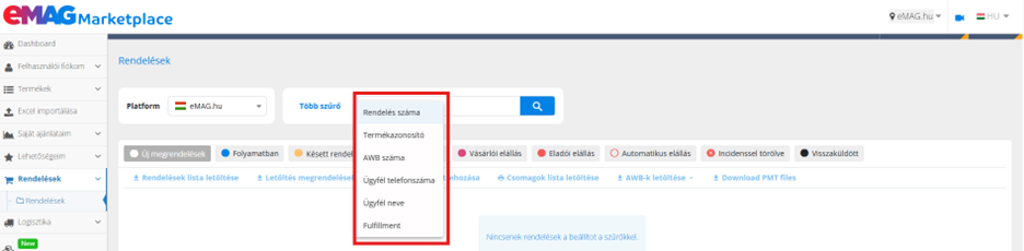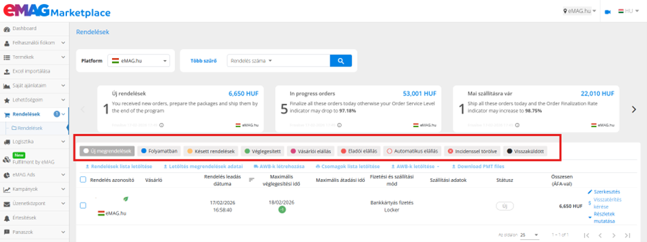 Hogy lásd az összes eMAG platformon beérkezett rendelést, lépj be a Rendelések menübe.