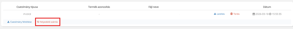 - A Melléklet típusa szekcióban megtaláljuk a Helyesbítő számla gombot, amelyet még egy megerősítés követ.