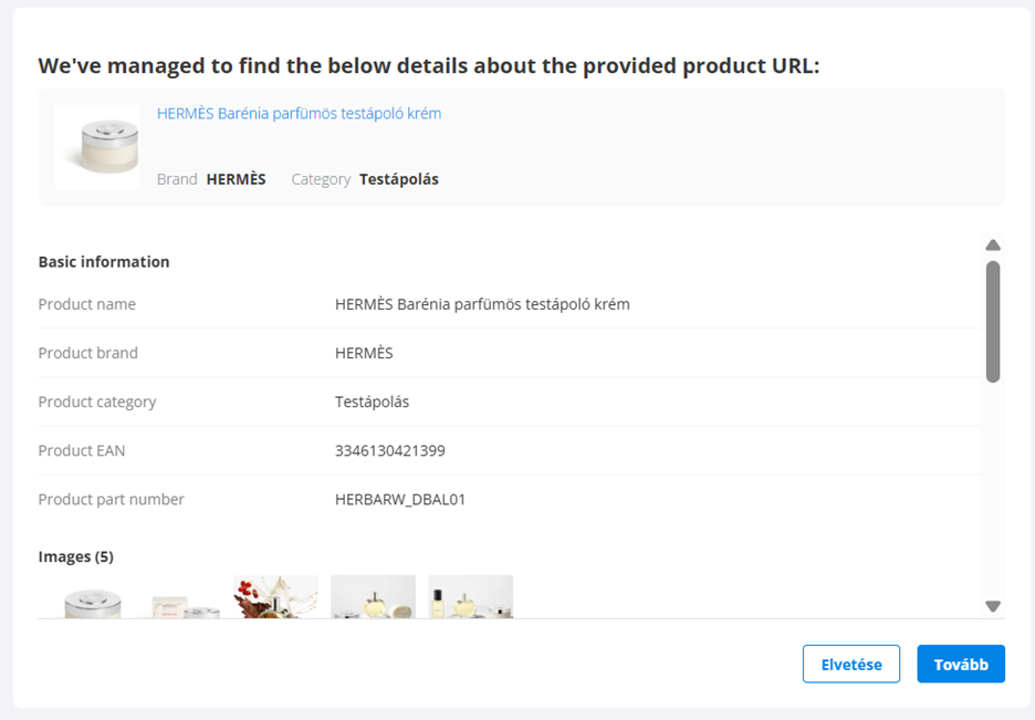 - Ha a megadott linkből kinyert információk nem elegendőek a platformon listázni kívánt termék megfelelő dokumentálásához, akkor azt a terméket a kézi listázási űrlap segítségével kell listáznod.